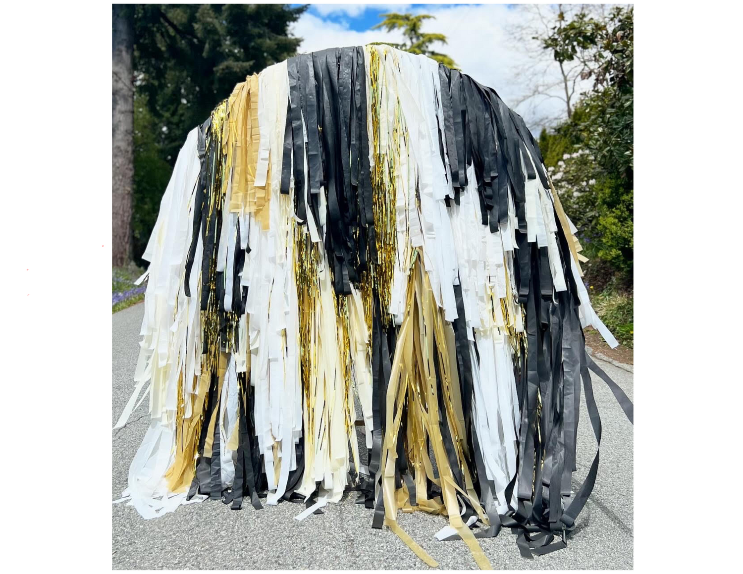 Our Fringe Backdrop rental combined with our Organic Balloon Installation is sure to make the perfect photo op for your graduation celebration!