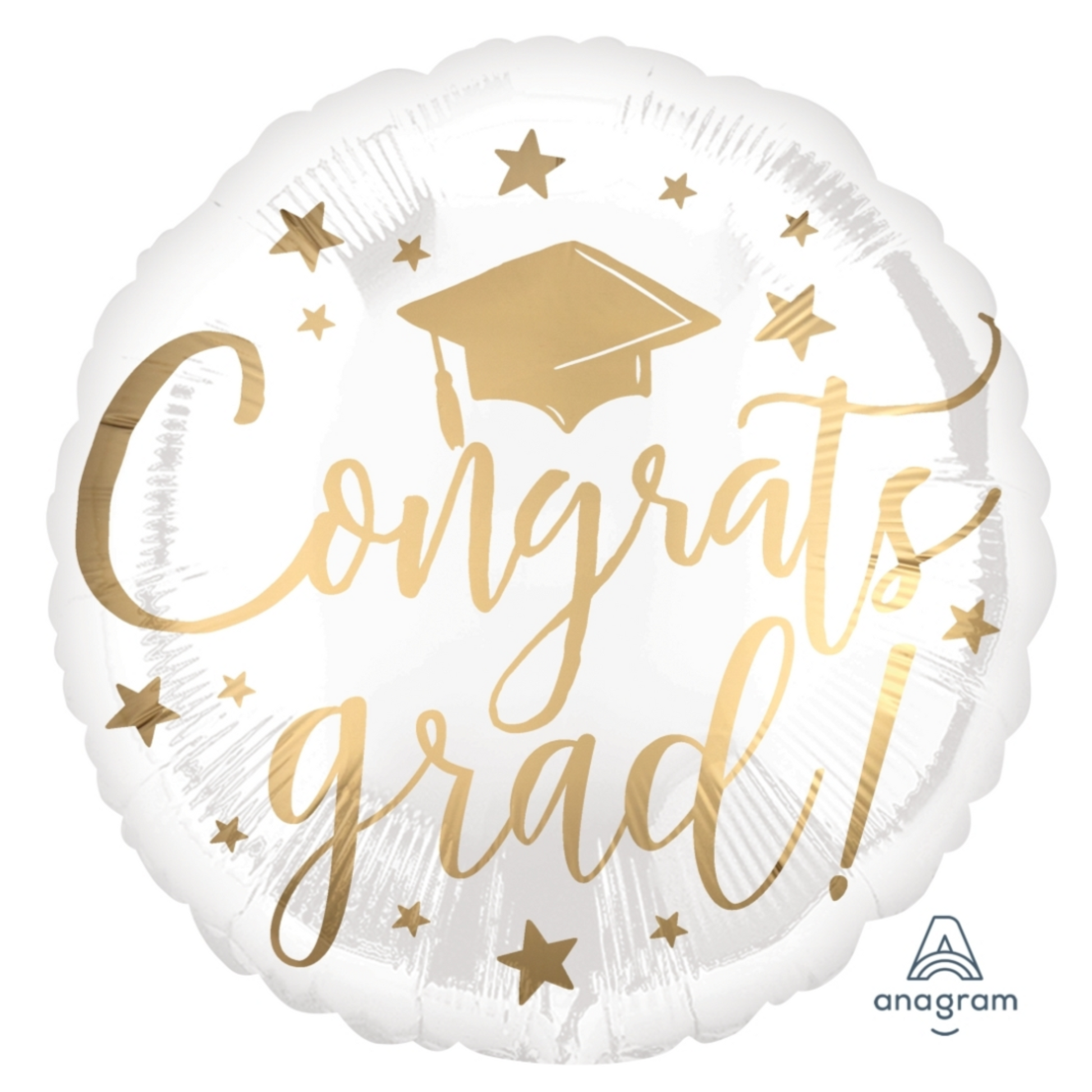 Perfect for any graduation celebration, this balloon adds a touch of sophistication and fun with its elegant white and gold design.